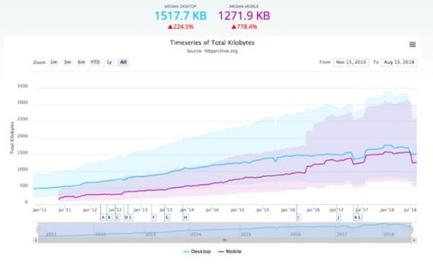 Webサイトの容量が年々増加、1400KB超え、表示時間が3秒を超えると53%のユーザーはサイトを離れる