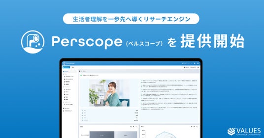 ヴァリューズ、生活者理解を一歩先へ導くリサーチエンジン「Perscope(ペルスコープ)」を提供開始