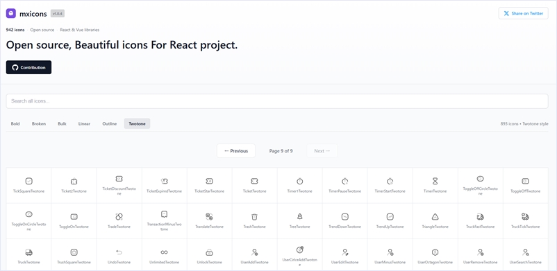 900種ほどのSVGアイコンを揃え、異なるスタイルも複数用意したReact向けのオープンソースのアイコンライブラリ・「mxicons」